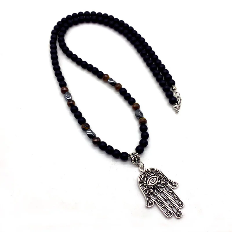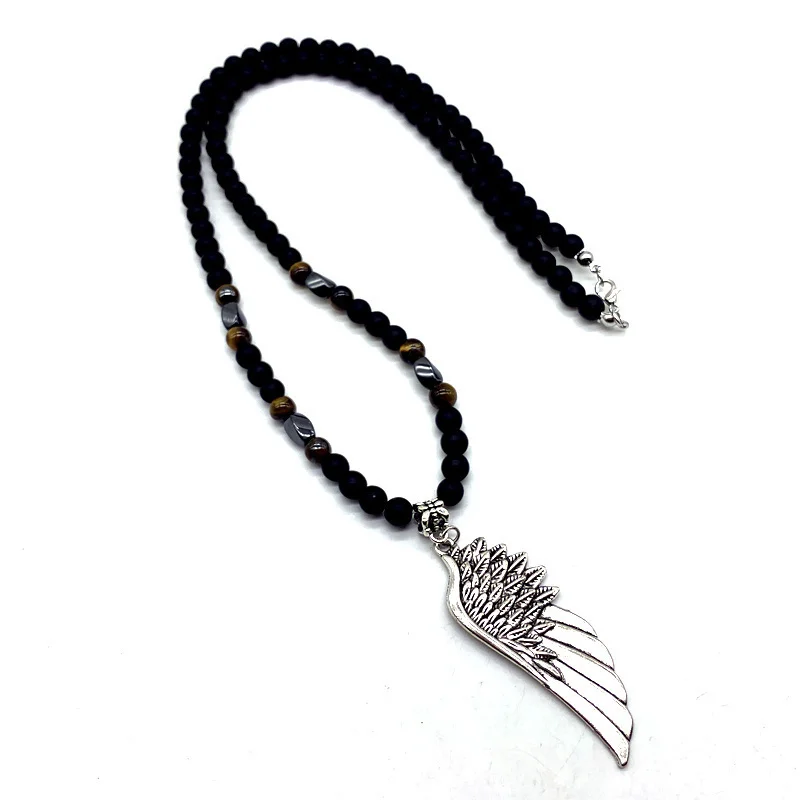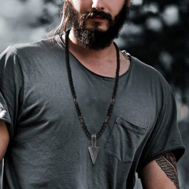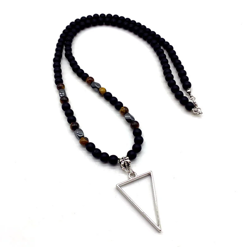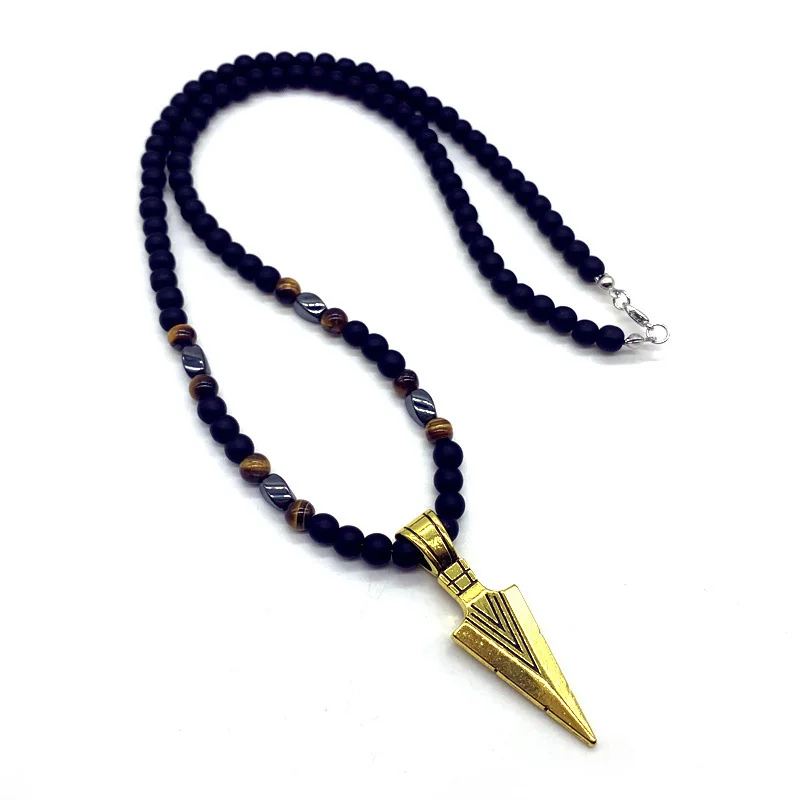 2020 Classic Arrow Pendant Necklace Men Handmade Tiger Eye Matte Strand Bead Necklace For Men Jewelry Gift