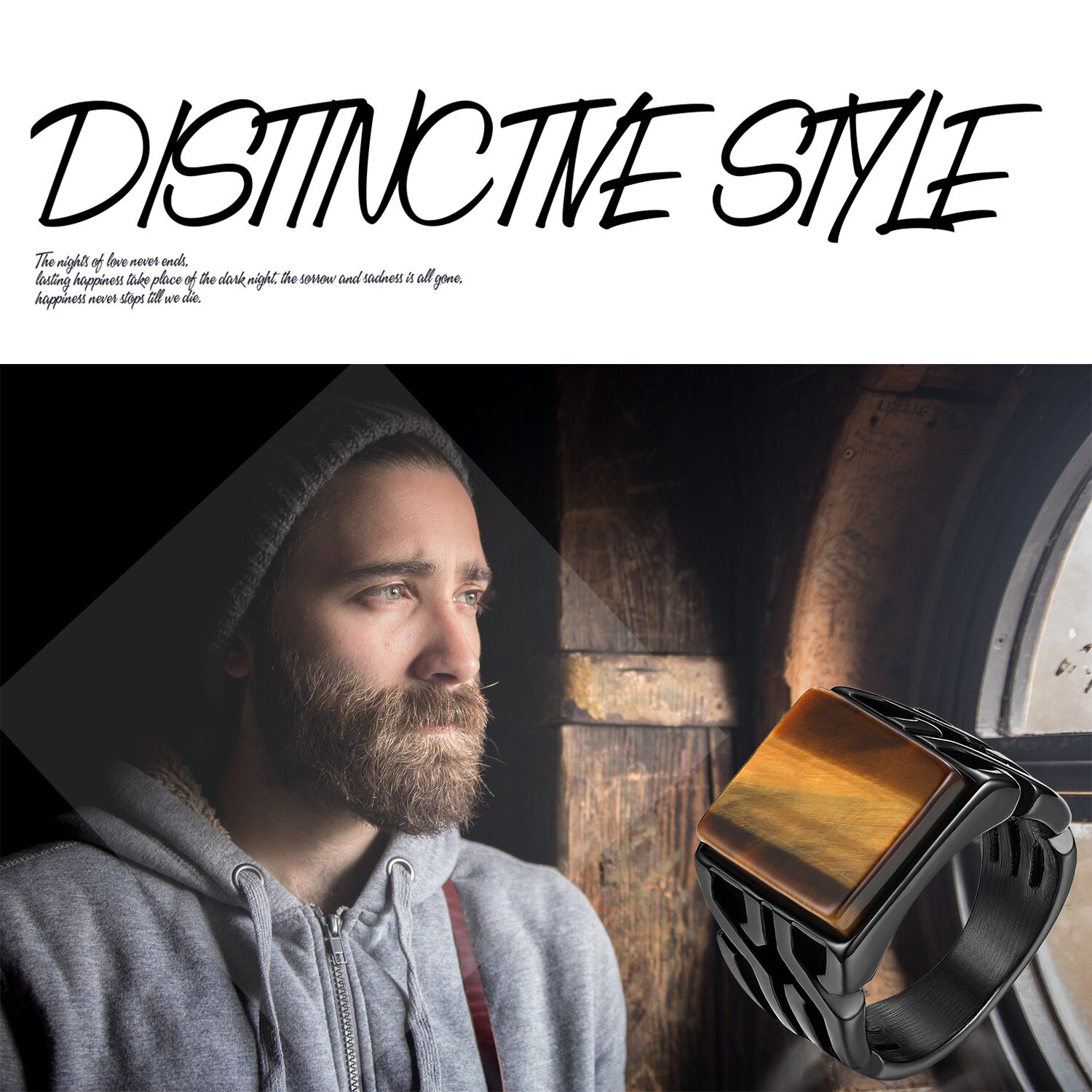 BONISKISS Vintage Men’s Ring Tiger Eye Stone Punk Classic Black Color Ring Male Stainless Steel Ring Bijoux Aneis Jewelry Gift