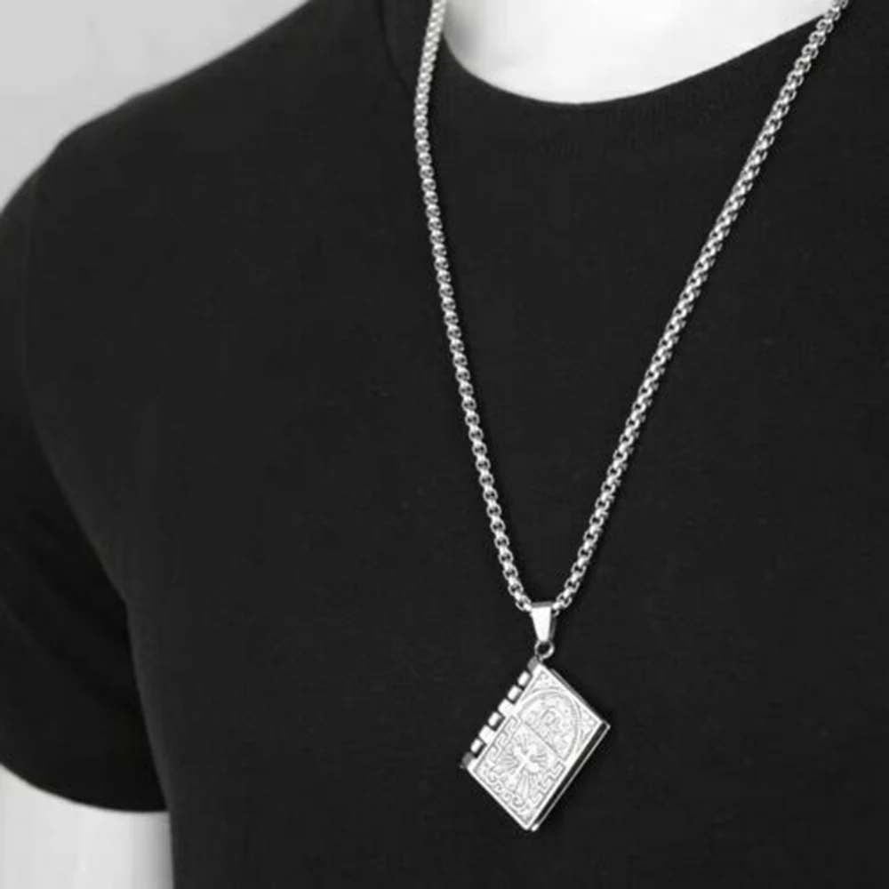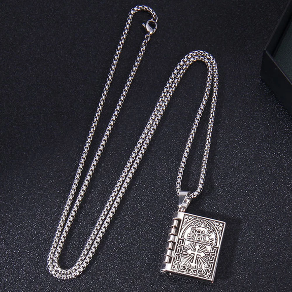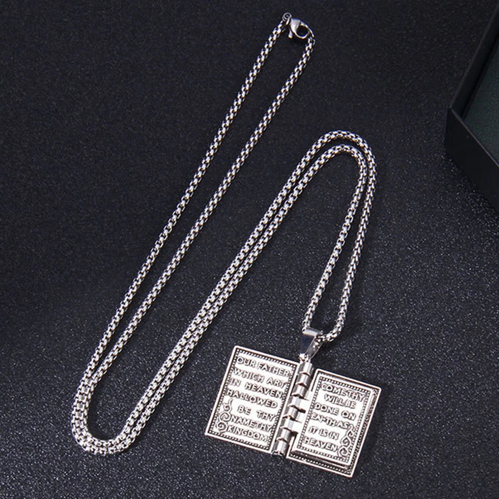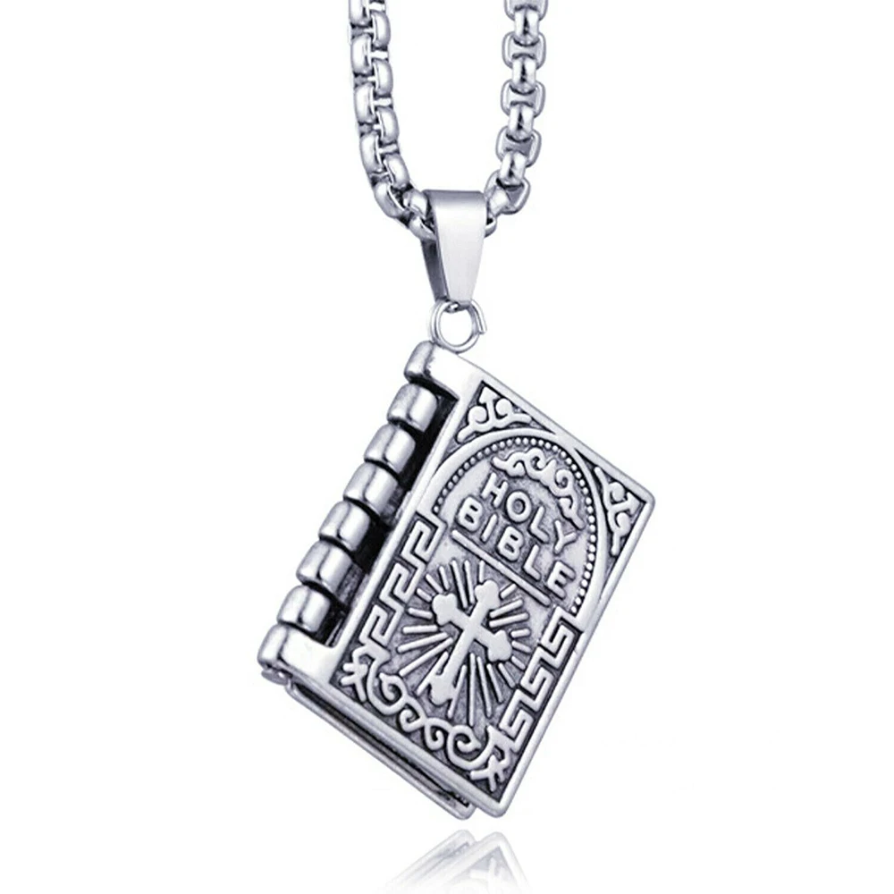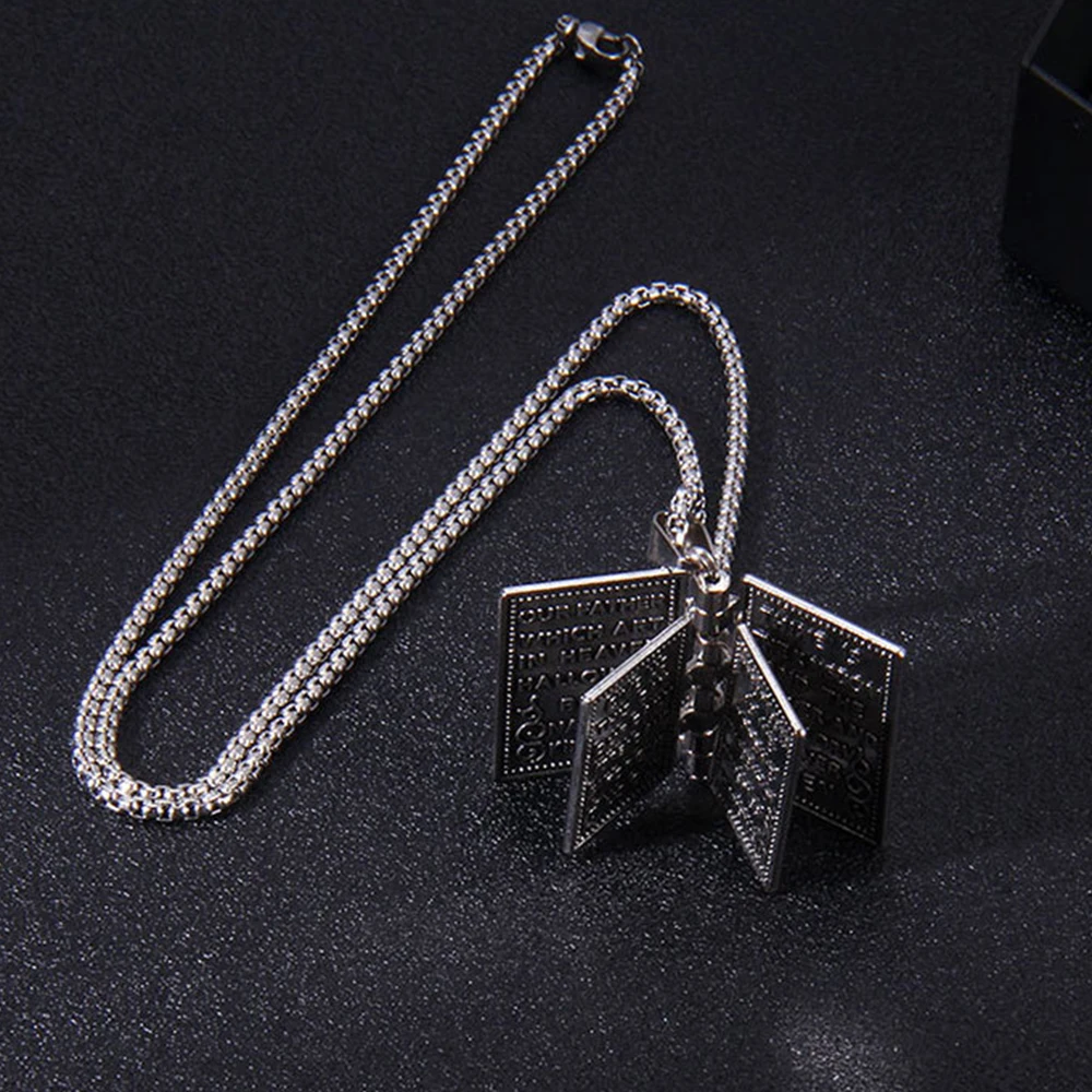 Dckazz Bible Cross Necklace Openable Lord’s Prayer Pendant Women Men Stainless Steel Chain Christians Jewelry Inspirated Gift