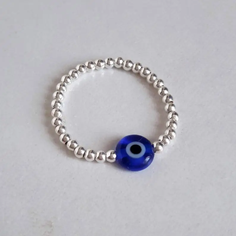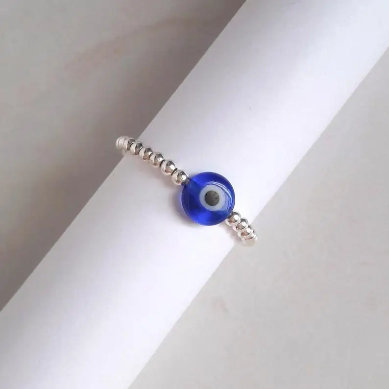 Evil Eye Rings For Women Vintage Silver Color Beads Anxiety Ring Demon Turkish Blue Eye Ring Handmade Wedding Jewelry 2022 Gift