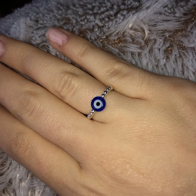 Be the first to review “Evil Eye Rings For Women Vintage Silver Color Beads Anxiety Ring Demon Turkish Blue Eye Ring Handmade Wedding Jewelry 2022 Gift”