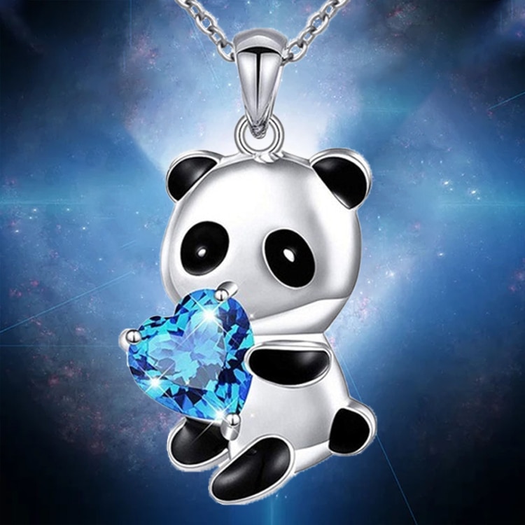 Exquisite Cute Panda Sapphire Heart Crystal Necklace for Women Animal Pendant Necklace Girls Birthday Anniversary Gift Jewelry