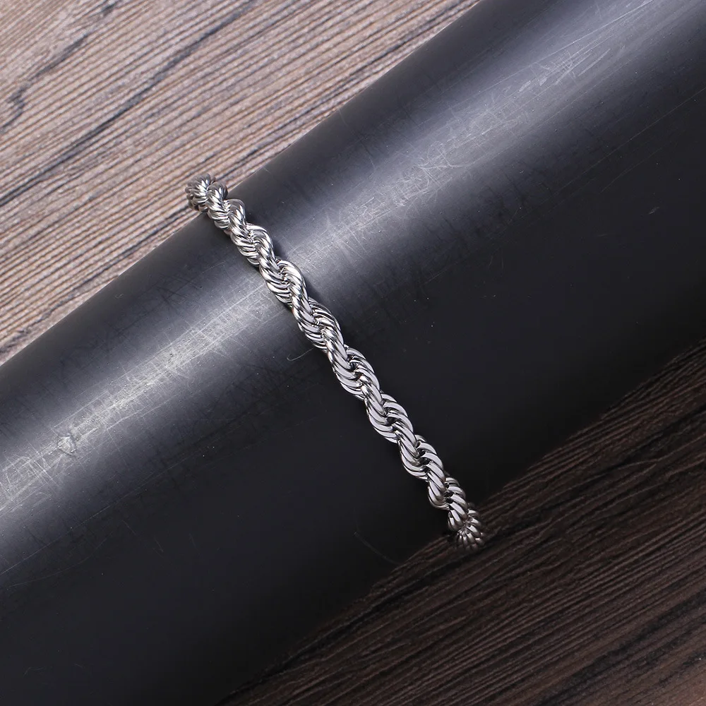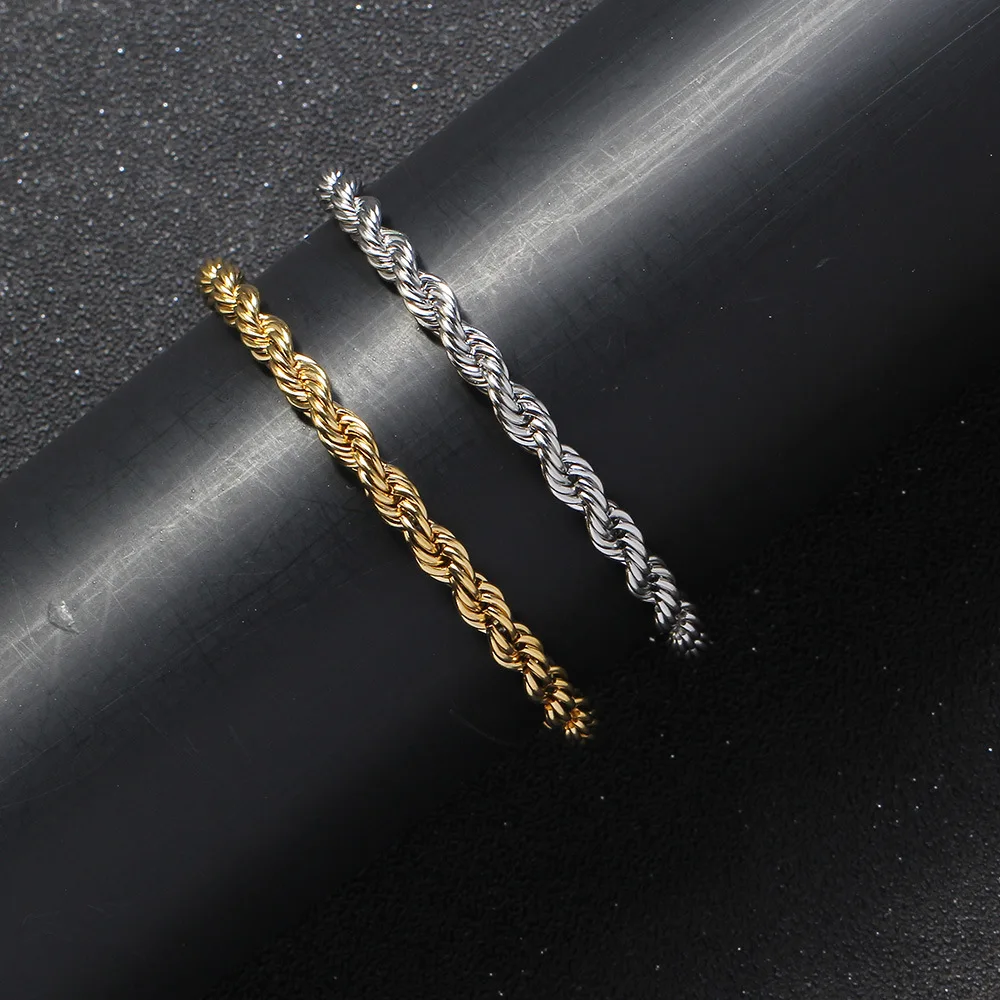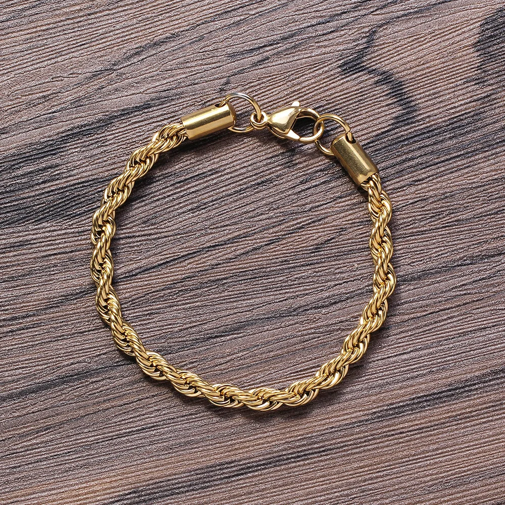Hip Hop 5MM 316L Stainless Steel Rope Chain Bracelet Gold Silver Color for Men Women Fashion Jewelry Gift