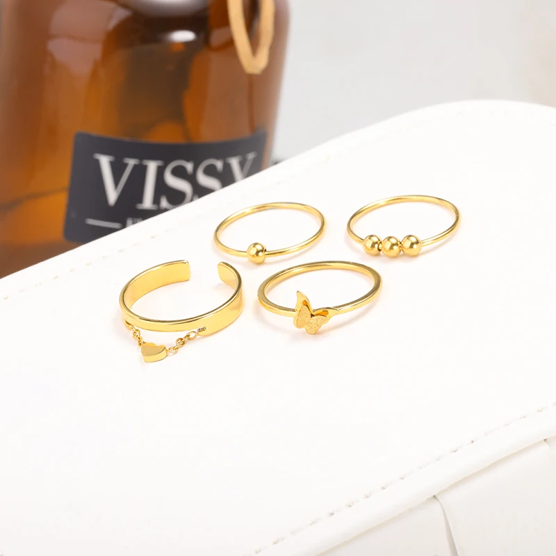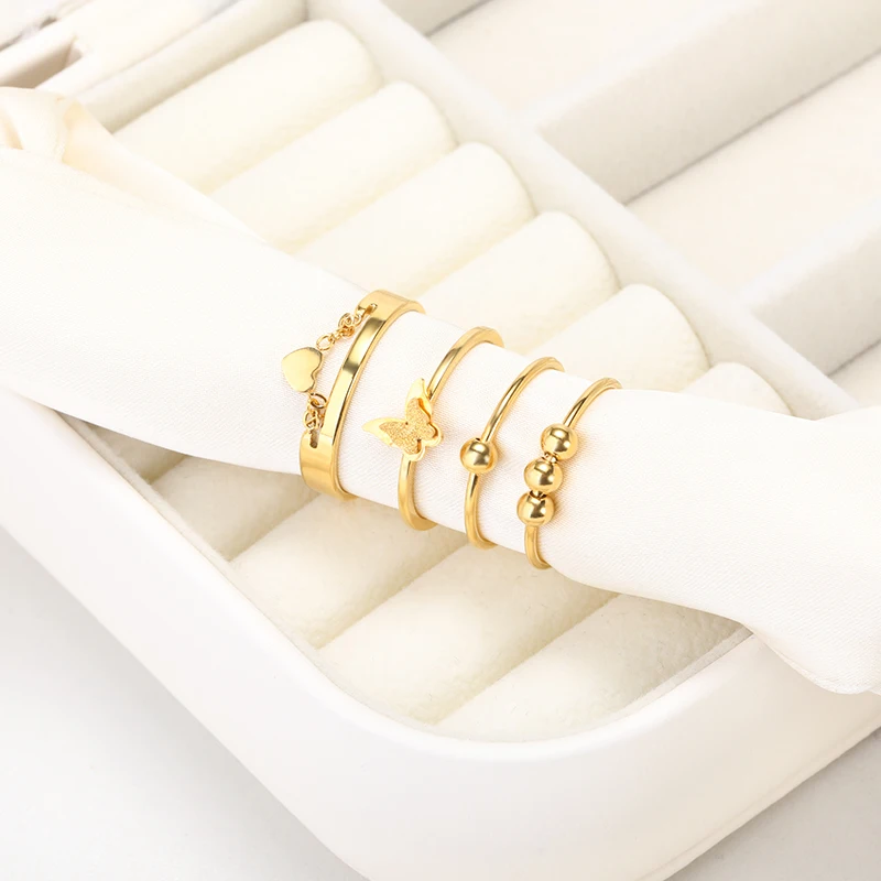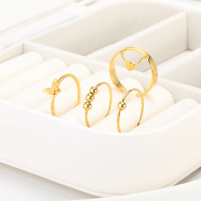 INS Simple Style Stress Relief Fidget Rings Stainless Steel Beads Anxiety Ring For Women Fashion Jewlery Friend Gift