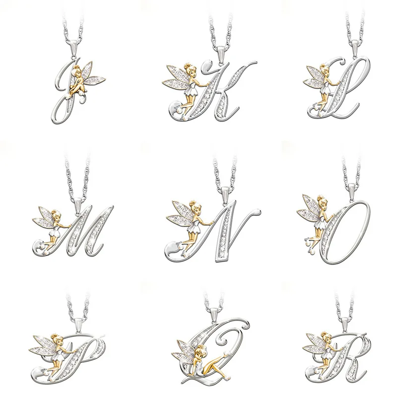Lovely Crystal 26 letters Flower Fairy Necklaces Women Lovely Fairy Wing Pendant Necklace Jewelry Party Wedding Gift