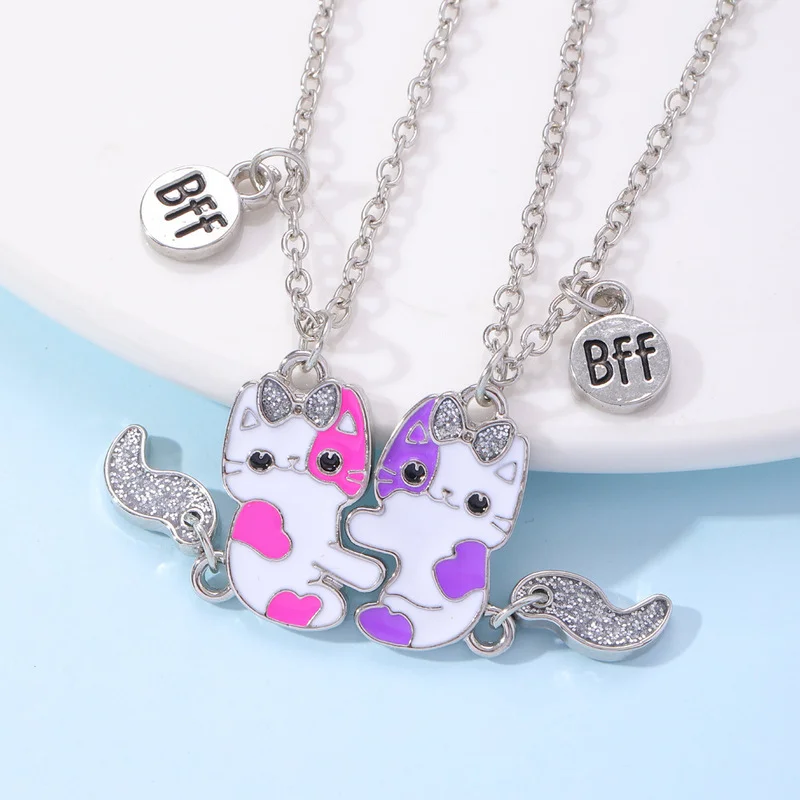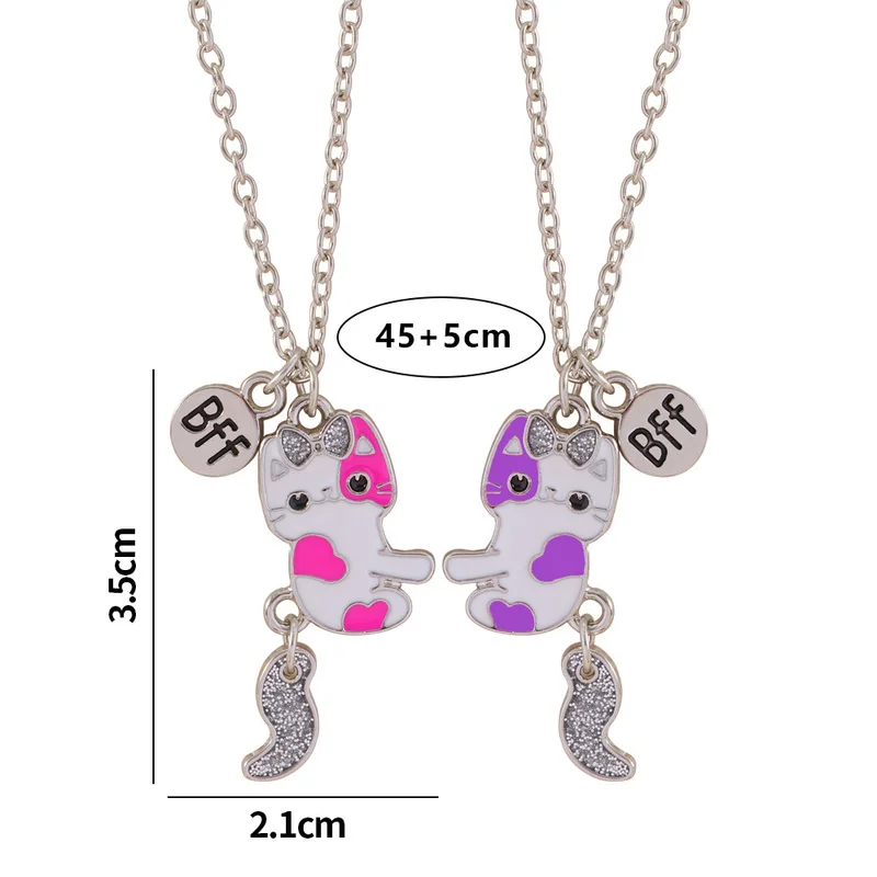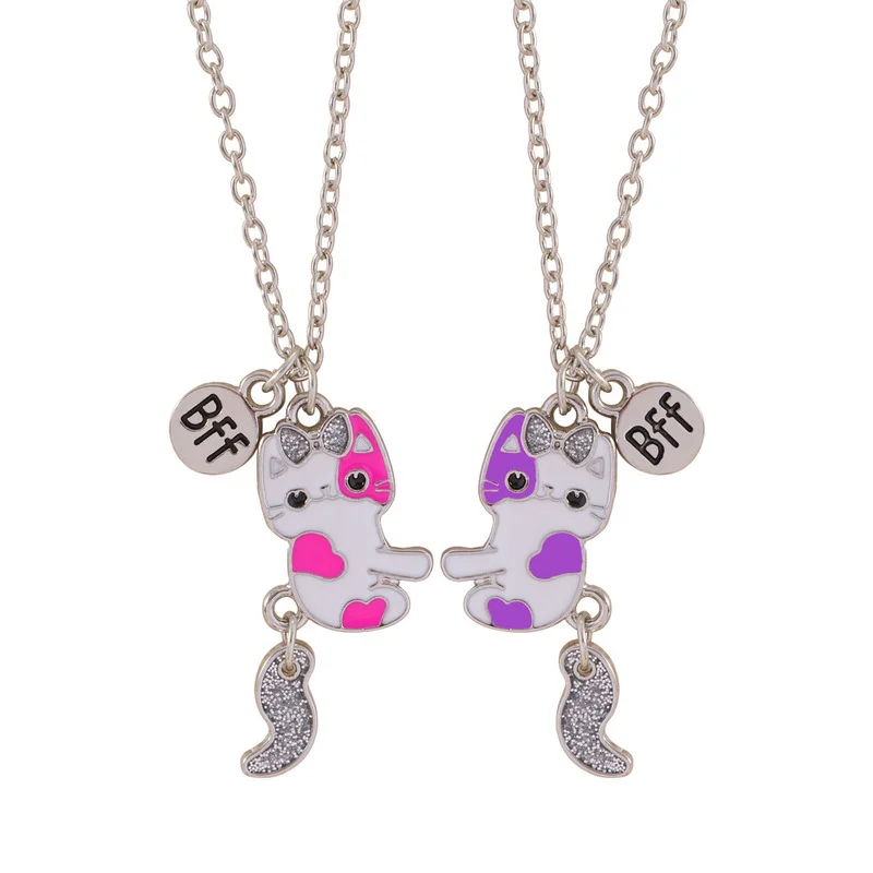 Luoluo&baby 2Pcs/set Cute Cartoon Cat Shape Pendant Chain Best Friends Necklace BFF Friendship Children’s Jewelry Gift for Girls