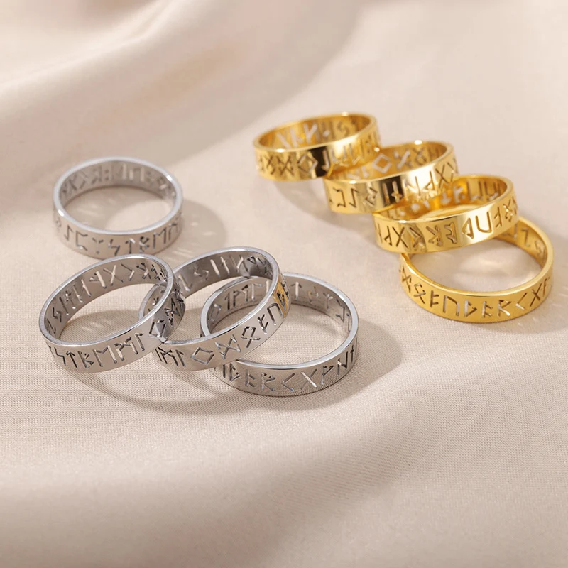 Minimalist Viking Runes Rings for Women Stainless Steel Geometric Cross Finger Ring Aesthetic Christmas Jewelry Gift bague femme