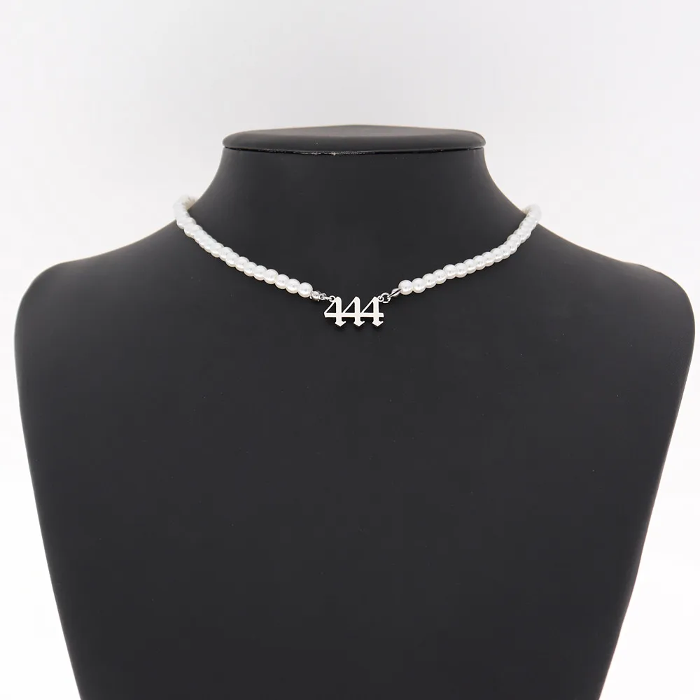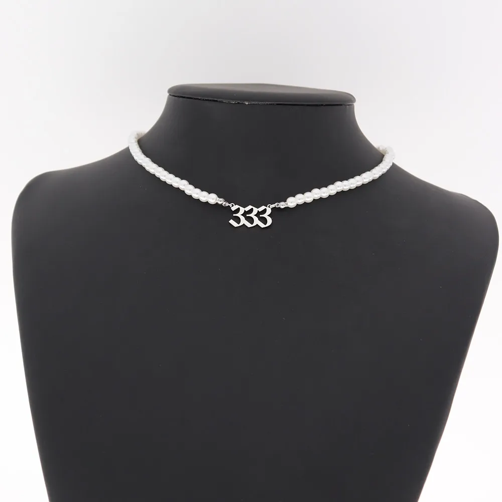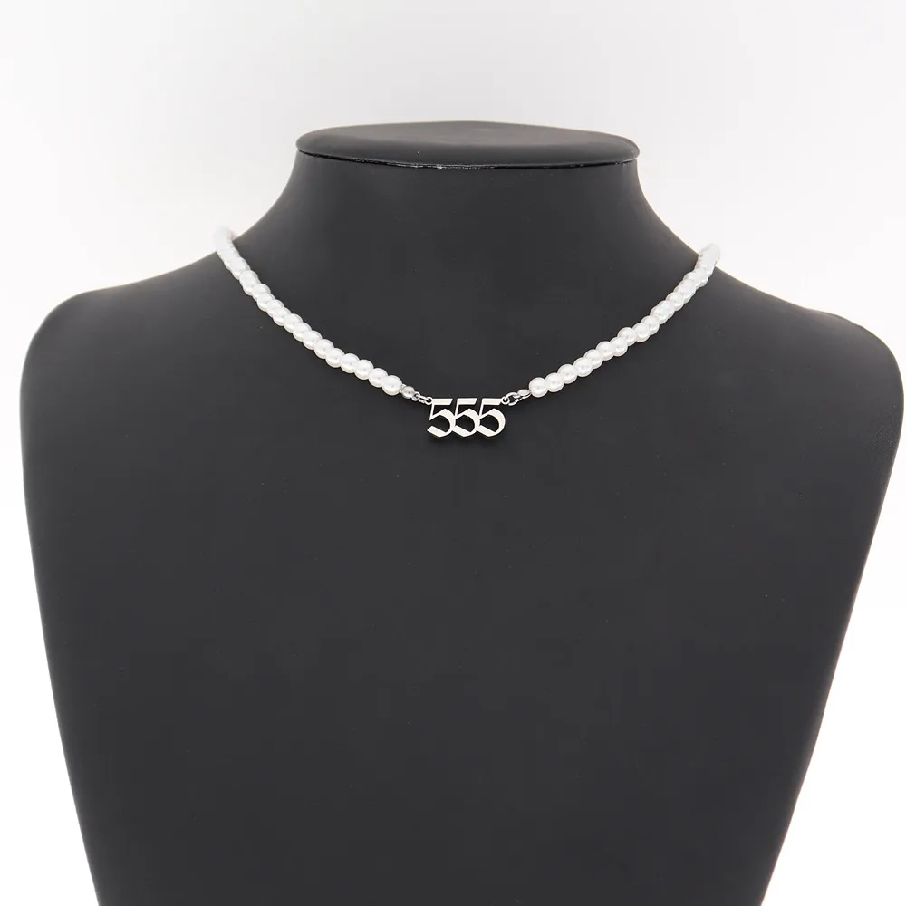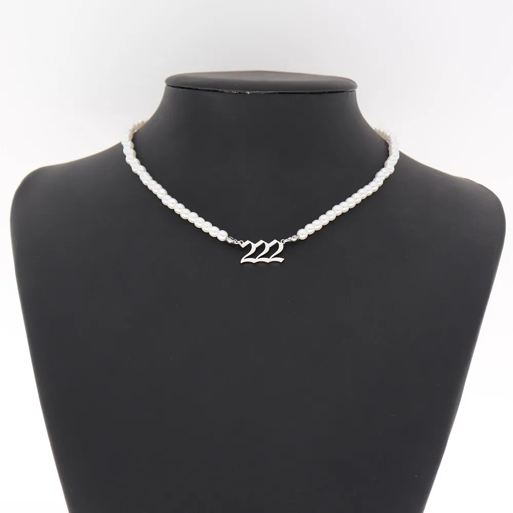 Pearl Choker Necklace 111 222 333 444 555 666 777 888 999 Angel Number Necklaces Women Stainless Steel Jewelry Gift Collier