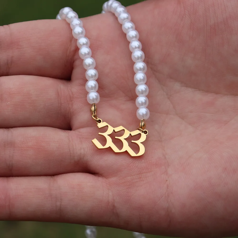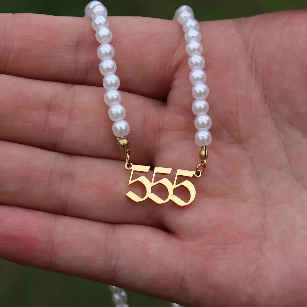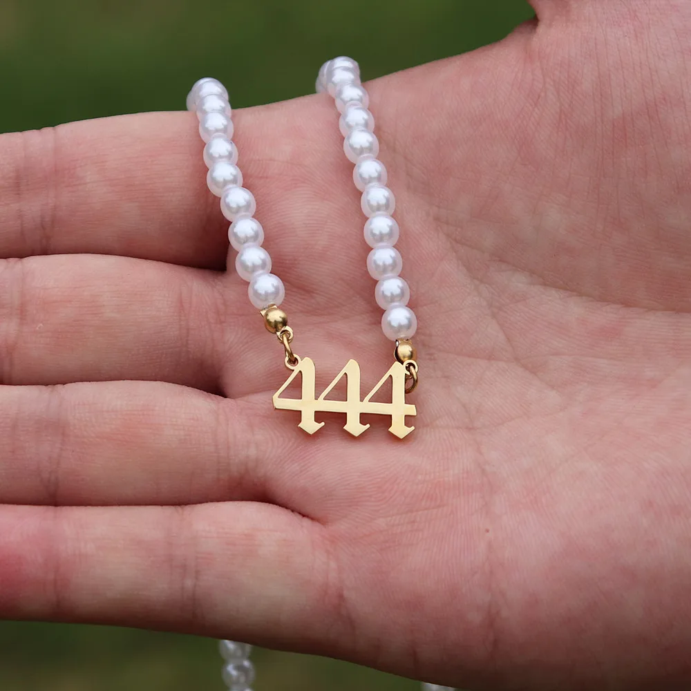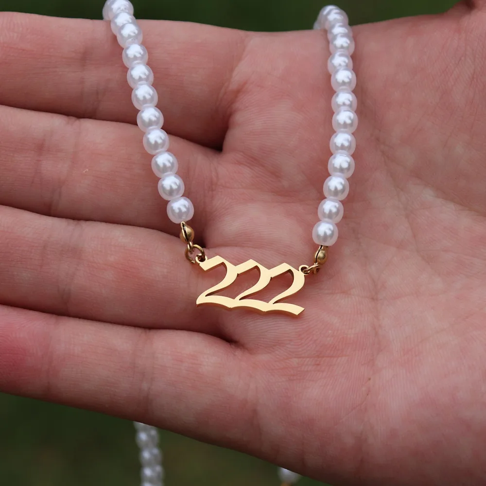 Pearl Choker Necklace 111 222 333 444 555 666 777 888 999 Angel Number Necklaces Women Stainless Steel Jewelry Gift Collier